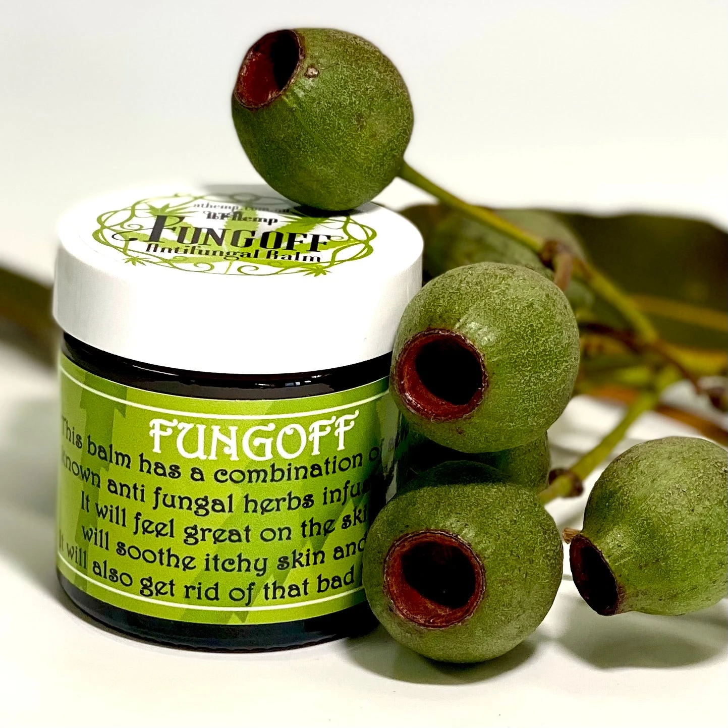 60ml This balm has a combination of several known anti-fungal herbs infused into it. Great for heat rashes, fungal infections. It will feel great on the skin, and soothe itchy skin and feet. It will also get rid of the bad foot smell.