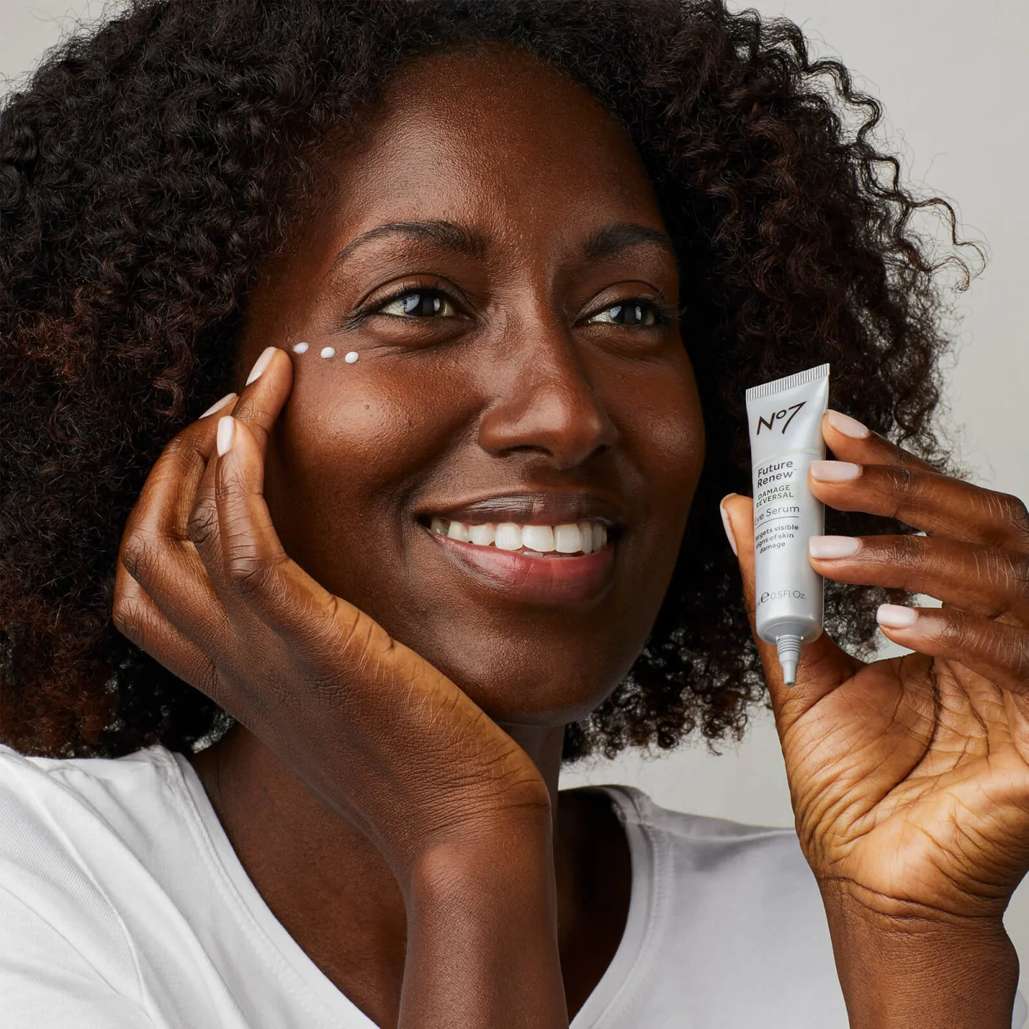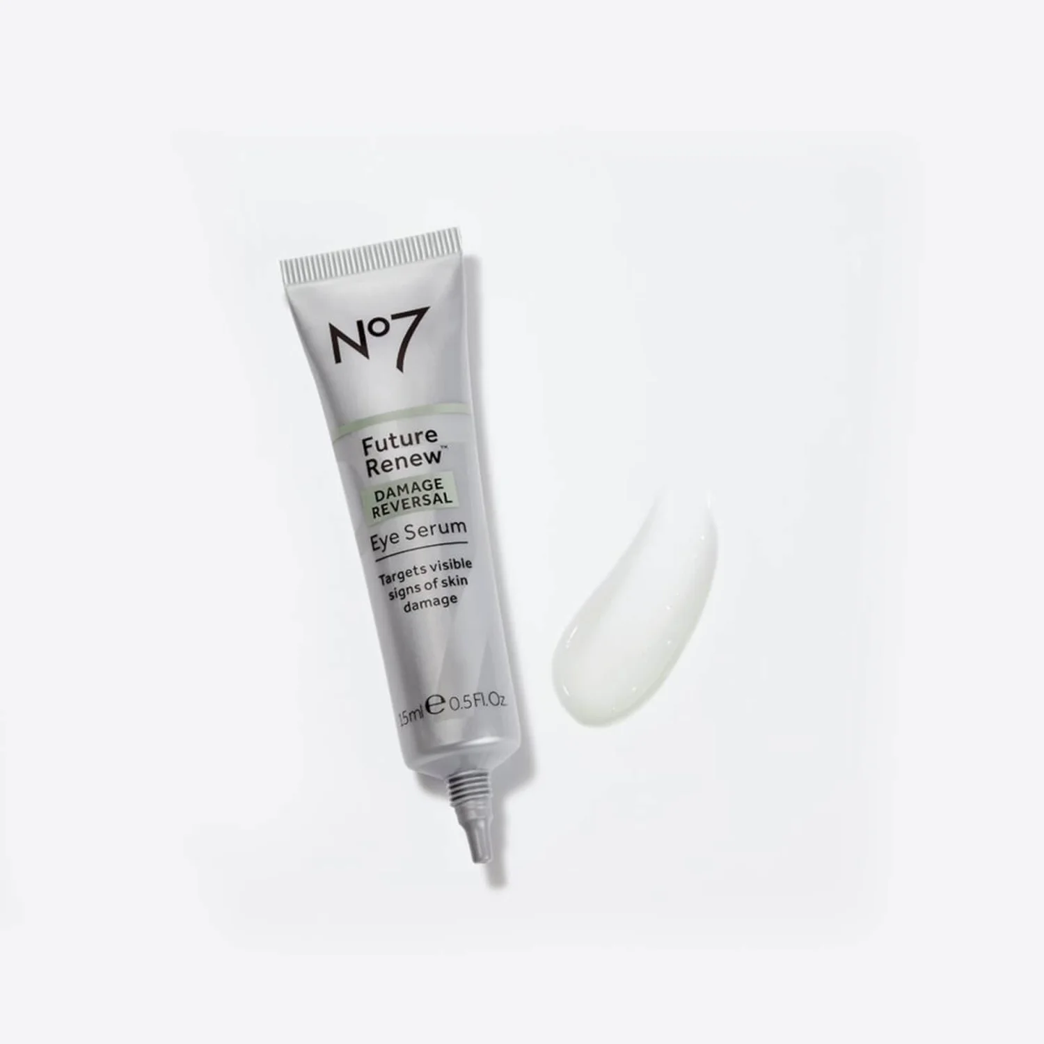 No7 Future Renewâ„¢ Damage Reversal Eye Serum reverses visible signs of skin damage around the eyes, such as the appearance of fine lines and wrinkles, uneven tone and texture, and the feeling of lost elasticity and dry skin**. This peptide eye serum is formulated with Pepticologyâ„¢, No7’s new and patent-pending peptide technology. Pepticology is exclusive to No7’s Future Renew line and supports the skin’s natural self-repair process. This skin repair eye serum is designed to be used with the rest of the No7 Future Renew range. Apply under-eye serum morning and evening, dotting around the eyes and gently blending around their contours. No7 is the U.K.’s best-kept beauty secret with over 85 years of trusted expertise – exceptional beauty shouldn’t be a luxury.