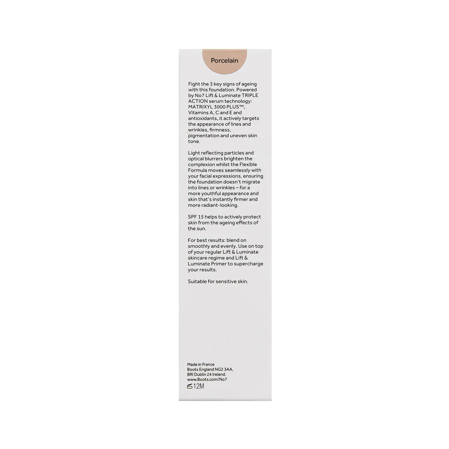 Powered by No7 Lift & Luminate Triple Action Serum technology, Lift & Luminate Triple Action Foundation instantly gives skin a firmer, brighter-looking appearance. This medium to full coverage foundation is formulated with light reflecting particles and optical blurrers to help uneven pigmentation and texture for an illuminated looking complexion.