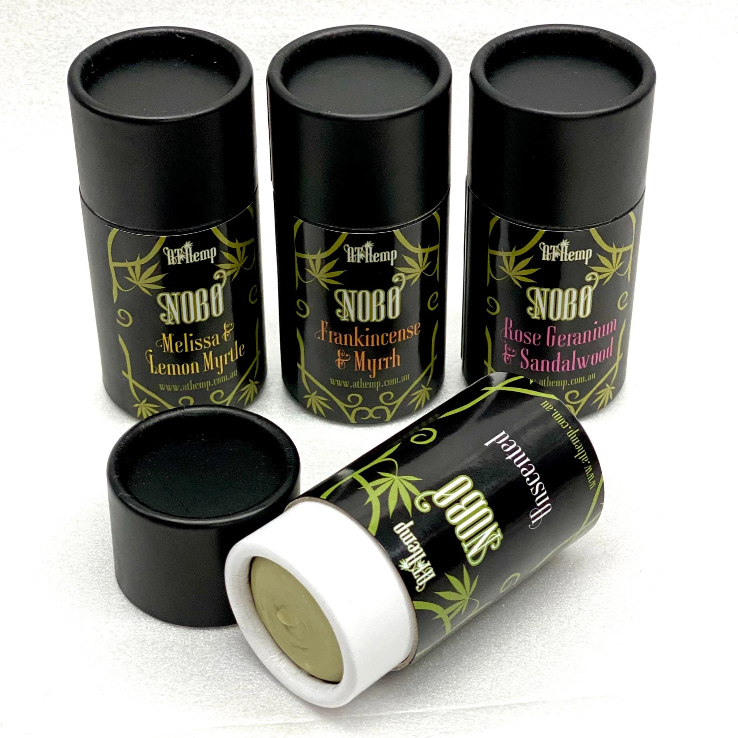 Contains Hemp Seed Oil. Diatomaceous Earth, Shea Butter, Bentonite Clay, Tapioca, Coconut oil, Candelilla Wax and Essential oils as listed