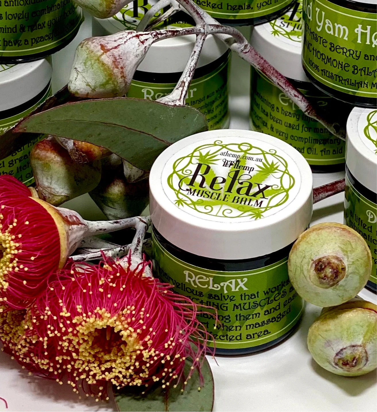 Contains – Arnica, Melissa (Lemon Balm), and Calendula infused oils, Hemp seed oil, Olive oil, wax, Melissa and Lemon Myrtle essential oils.