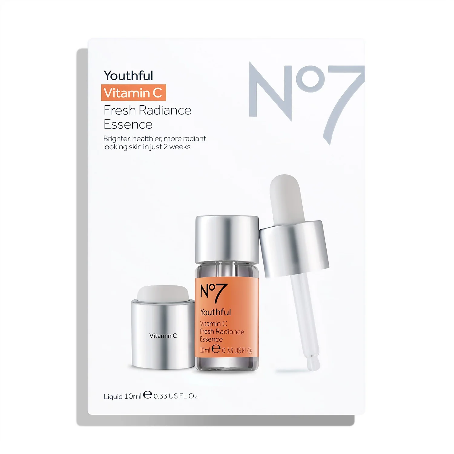 No7’s Vitamin C Essence is a 2-week treatment that quenches skin with 5% pure Vitamin C, a key anti-oxidant for supporting skin’s natural renewal and bringing back a healthy glow. By freshly activating the essence at home, you ensure the Vitamin C remains at its most powerful for maximum skincare benefits. After 2 weeks of daily use, skin looks brighter, skin tone looks more even and skin texture is improved.