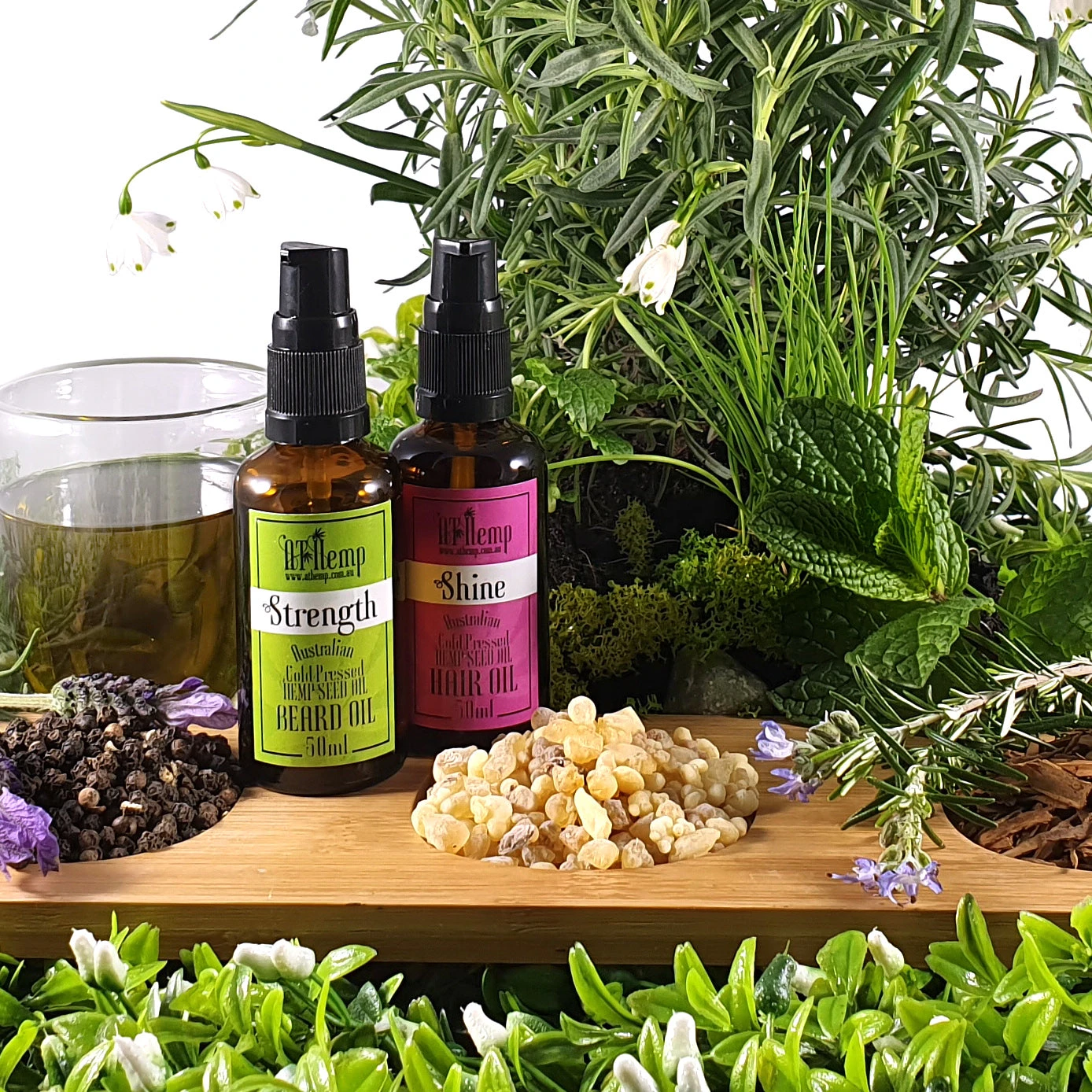 Contains โ Hemp Seed oil, Castor Oil, Rosemary, Lavender, Frankincense, Helichrysum, Geranium, Chamomile and Lemongrassย essential oils.